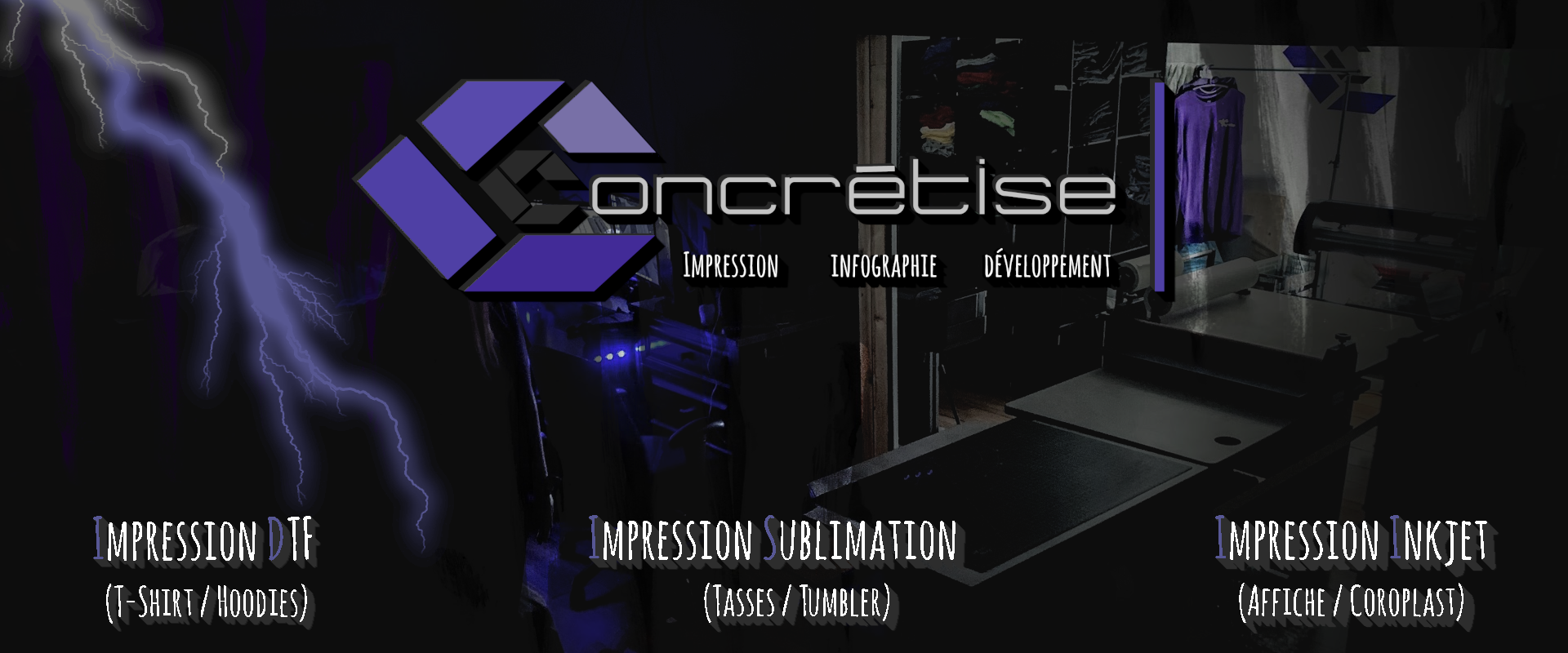 Concrétise est une entreprise basée à Trois-Rivières offrant des services d'assistance personnalisée pour la réalisation de projets (conception 3D, infographie, prise de photo), mais aussi des services d'impression tant pour des fins promotionnelles que personnelles!
